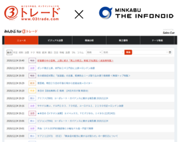 2021年1月,正式向丸三證券提供股票數(shù)據(jù) 2021年1月4日 株式會社みんかぶ與丸三證券聯(lián)手,為投資者推出了名為「MINKABU for 03trade」的服務,為更多的個人投資者提供快速、準確、全面的金融服務。